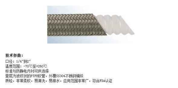 PU鋼絲管采用聚醚型-亞聚安酯(E-PUR)為材料加工而成,以堅(jiān)固彈性不銹鋼鋼絲包覆于管中間,具有很強(qiáng)的抗壓輸送能力,耐受極限溫度、壓縮、化學(xué)品、臭氧、射線、潮濕和環(huán)境暴露。管體透明光滑,可清晰看見物料在管內(nèi)輸送,絕對(duì)不含有機(jī)增塑劑,鄰苯二甲酸鹽和乳膠添加物等有害物質(zhì)。食品級(jí)鋼絲管不分解任何氣味和味道;光滑內(nèi)壁不粘水;抗菌及水解,不滋生細(xì)菌及微生物,非常良好的抗化學(xué)性;極度抗磨損,具有超長的使用壽命。